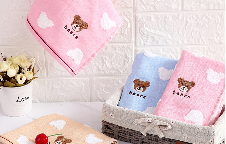 毛巾上可爱的刺绣图案给人带来了舒适的感觉。