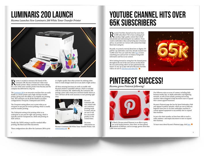 Ricoma Launches New Luminaris 200 White Toner Transfer Printer
